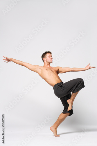 © Alexander Y, Obraz premium modern ballet male dancer posing over white studio background