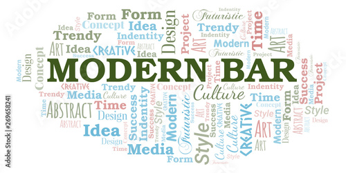 © sharafmaksumov, Obraz premium Modern Bar word cloud. Wordcloud made with text only.