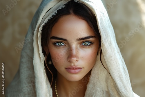 © anzodesign, Obraz premium Modern Bedouin-inspired portrait of a woman with striking features and traditional attire
