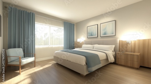 © NUMBER BLACK, Fototapeta premium Modern bedroom interior, light and airy