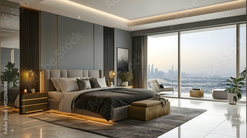 © ayesha, Naklejka premium Modern bedroom with panoramic vie B2095
