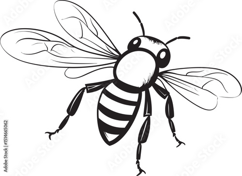 Fototapeta premium Modern Bee Illustration with Bold Black Vector Linework Artistic Bee Vector...