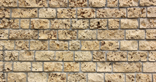 Fototapeta premium Modern beige limestone cladding forming a textured wall background