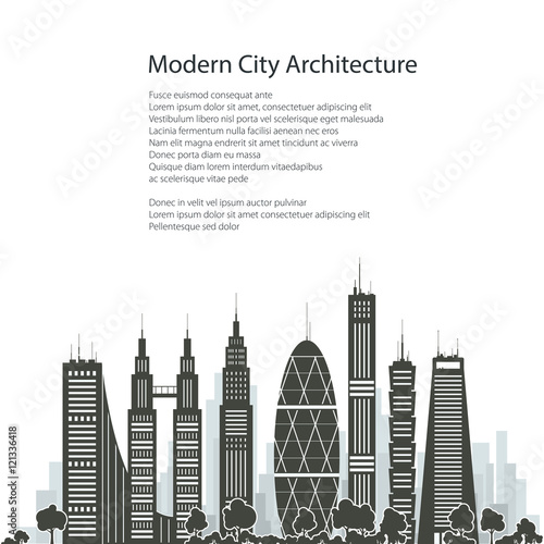 © serz72, Naklejka premium Modern Big City with Buildings and Skyscraper Isolated on White Background , Architecture Megapolis, City Financial Center, Poster Brochure Flyer Design, Vector Illustration