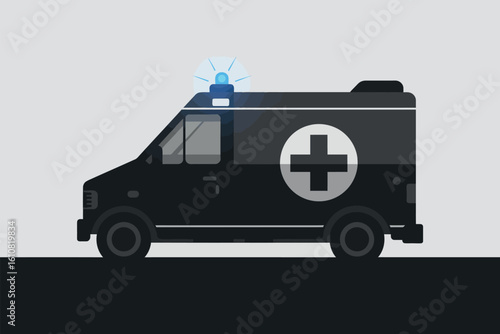 © SnapArtStock, Fototapeta premium Modern black ambulance with blue flashing lights and medical cross