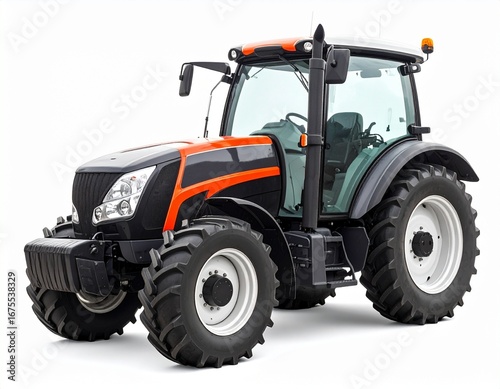 © Shoaib, Obraz premium Modern Black and Orange Farm Tractor on white background