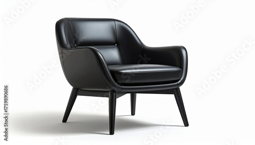 Naklejka premium Modern black armchair with sleek leather upholstery, curved backrest,...