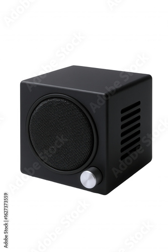 Obraz premium Modern Black Cube Speaker with Silver Volume Knob and Grille Detail,...