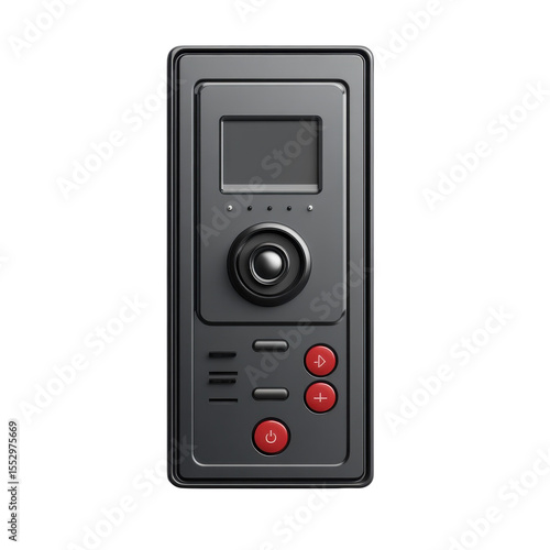 © Jahanzaib, Fototapeta premium Modern Black Device Interface With Red Buttons 3D Rendered Industrial on transparent background