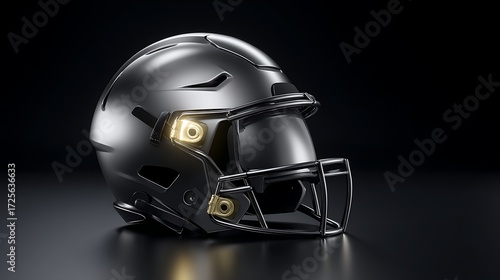 Naklejka premium Modern Black Football Helmet with Gold Accents and Visor on Dark Background