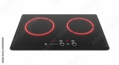 © NaufalBaidawi, Fototapeta premium Modern black glass electric stovetop with glowing red heating elements.