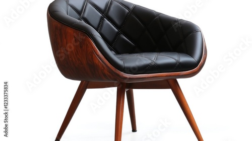 © azi, Naklejka premium Modern black leather armchair with wooden frame.
