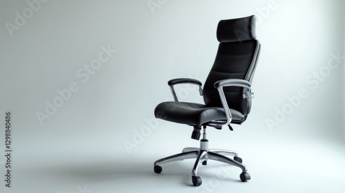 © Nurul, Fototapeta premium Modern Black Leather Office Chair in Studio