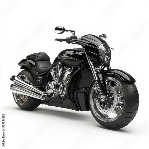 © MuhammadAbid, Fototapeta premium Modern Black Motorcycle with Chrome Exhaust Pipes and Single Rider Seat on White Background
