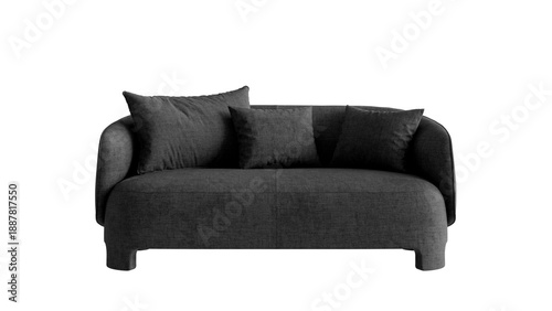 Obraz premium Modern black sofa with pillows on an isolated background.
