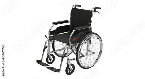 © FahimAbrar, Fototapeta premium Modern black wheelchair isolated on a solid black background
