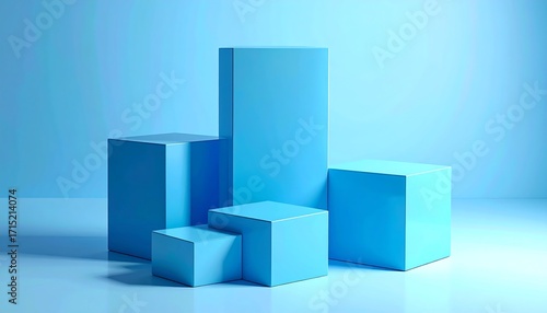 Obraz premium Modern Blue Geometric Display Platform Arrangement