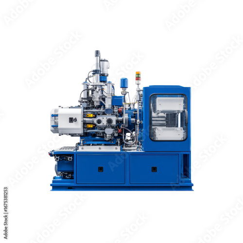 © Viru, Fototapeta premium Modern Blue Industrial Injection Molding Machine in Studio Setting