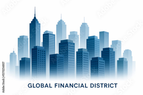 © DailyStock, Naklejka premium Modern blue skyscrapers cityscape urban architecture image