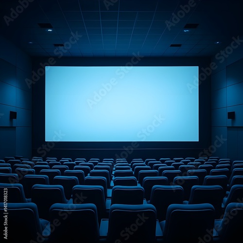 Fototapeta premium Modern Blue-Toned Empty Movie Theater Scene