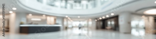 © Andrii Zastrozhnov, Fototapeta premium Modern blurred interior of office lobby with soft lighting