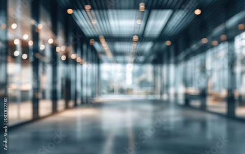 © li, Fototapeta premium Modern blurred office space of a business building center. Glass wall with empty space. Blurred abstract light background for presentation and design. High quality. High quality