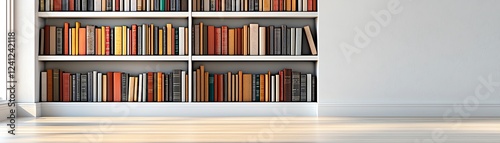 Fototapeta premium Modern bookshelf filled with various books.