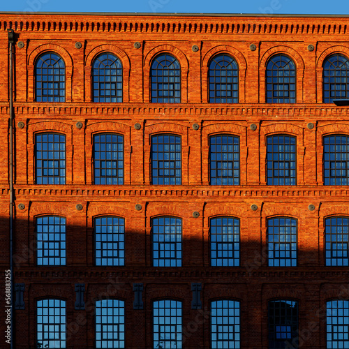 © 9parusnikov, Fototapeta premium Modern brick and glass facade of the office building.