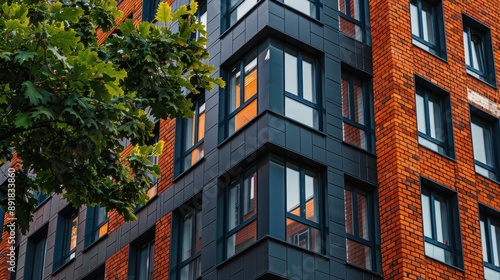 © hanafi 99d, Fototapeta premium Modern Brick Building with Large Windows
