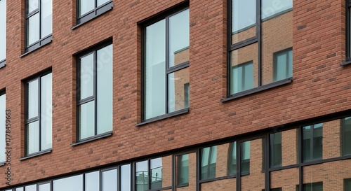 © Dekio, Obraz premium Modern Brick Building with Reflective Windows.
