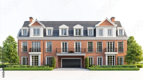 © Benzbutter, Fototapeta premium Modern Brick House with Classic Touches and Green Landscape Surroundings