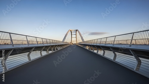 © Abdul Stocks, Obraz premium Modern Bridge Architecture at Sunset: Steel Structure, Cityscape, Golden Hour, Wide Angle View