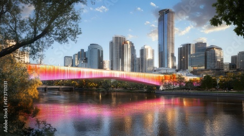 © Fay, Fototapeta premium Modern bridge lights up city skyline