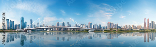 Naklejka premium Modern Bridge Over River in Urban Cityscape