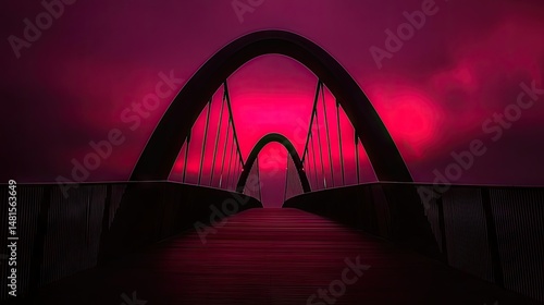 © Berkah1789, Obraz premium Modern bridge spanning in front of a vibrant red and pink sky