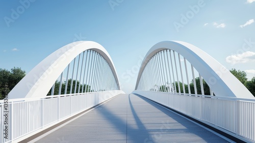 Fototapeta premium Modern bridge with arched design against a clear blue sky.