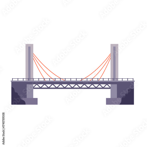 Obraz premium Modern bridge with red cables over gray foundation supports