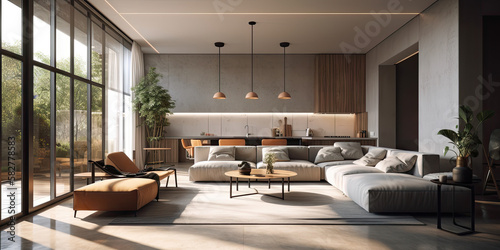 © Vertigo Images, Fototapeta premium Modern bright home living room interior, background, 3d render Generative AI