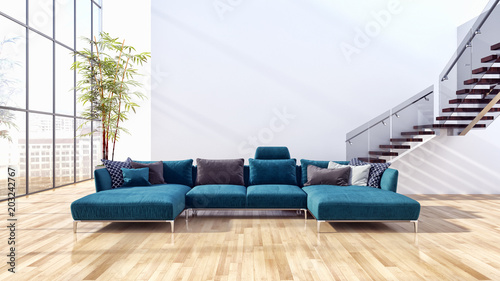 Naklejka premium Modern bright interiors apartment 3D rendering illustration