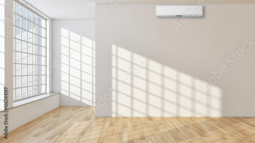 Obraz premium Modern bright living room lounge interior with air conditioning. 3D rendering