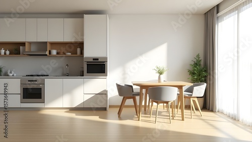 © Voziah, Fototapeta premium Modern Bright Open-Plan Kitchen and Dining Area