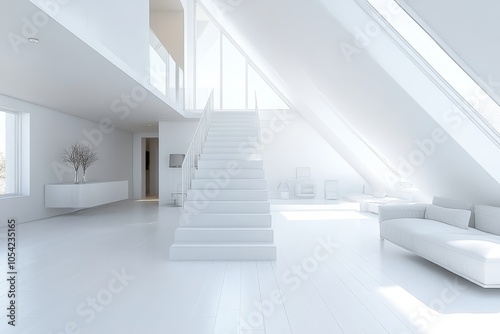 Obraz premium Modern bright open space interior in attic, 3d render, Generative AI