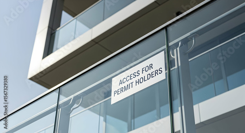 Fototapeta premium Modern Building Access Designated Only For Permit Holders Exterior Architecture