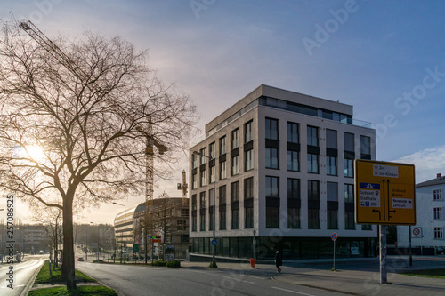Naklejka premium modern building and street - evening sun