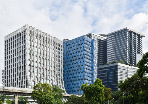 © Ratchapon, Fototapeta premium Modern building cityscape view with blue sky background