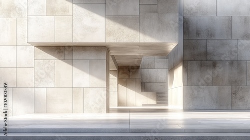 © 楠 刘, Obraz premium Modern Building Constructed with Warm Grey Concrete Stones and White Mortar, Contemporary Architecture Design.