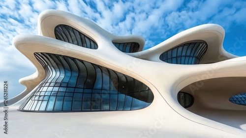 © Umi Sakina, Fototapeta premium Modern building, curves, sky, clouds, architectural design