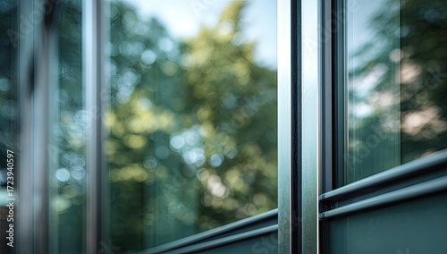Naklejka premium Modern building facade with reflective glass and metal trim