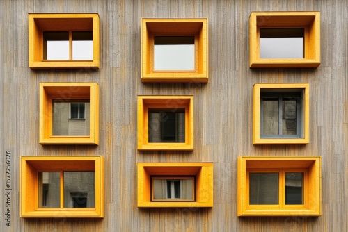 © risol, Fototapeta premium Modern building facade with yellow window frames