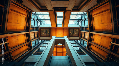© KANAKA, Obraz premium Modern Building Interior with Geometric Design and Natural Light